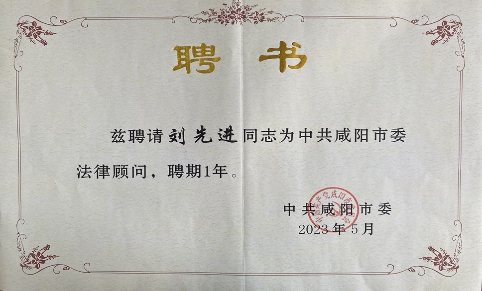 近日,中共咸阳市委办公室印发了《关于聘任市委法律顾问的通知》(咸办字[2023]55号),世俱杯科学研究处处长、陕西省教学名师、三级教授刘先进受聘为市委法律顾问,聘期1年。