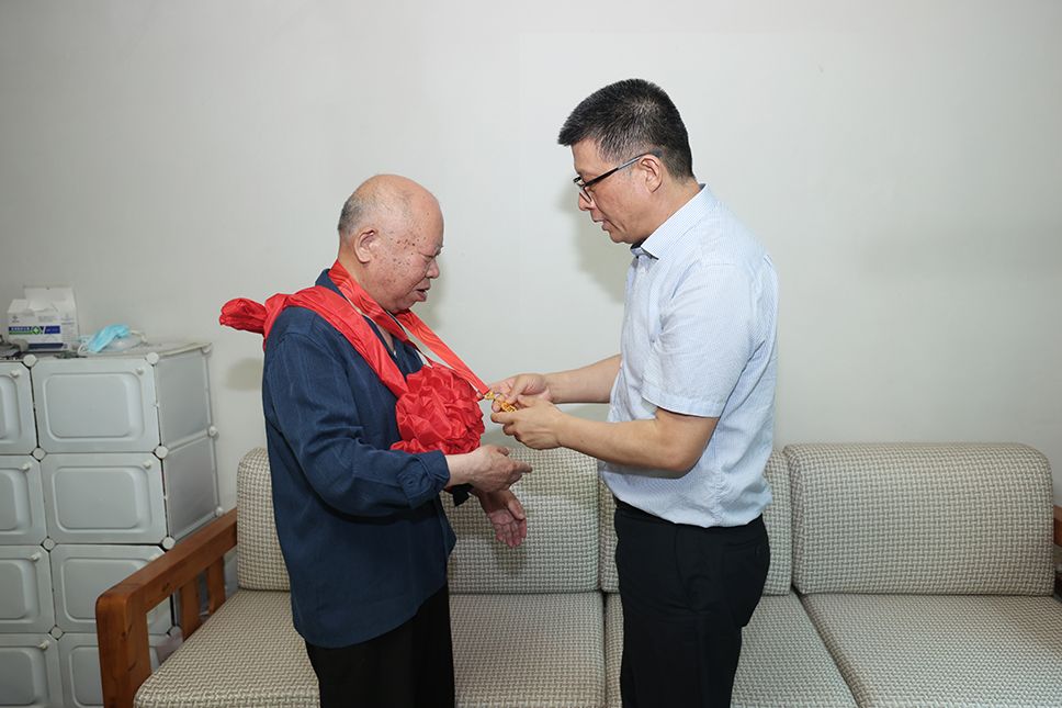 在庆祝中国共产党成立102周年前夕,6月28日,校党委书记赵万东、党委副书记周群英分别走访慰问了世俱杯50年党龄的老党员王勇、史润生同志,向他们颁发“光荣在党50周年”纪念章。