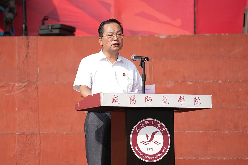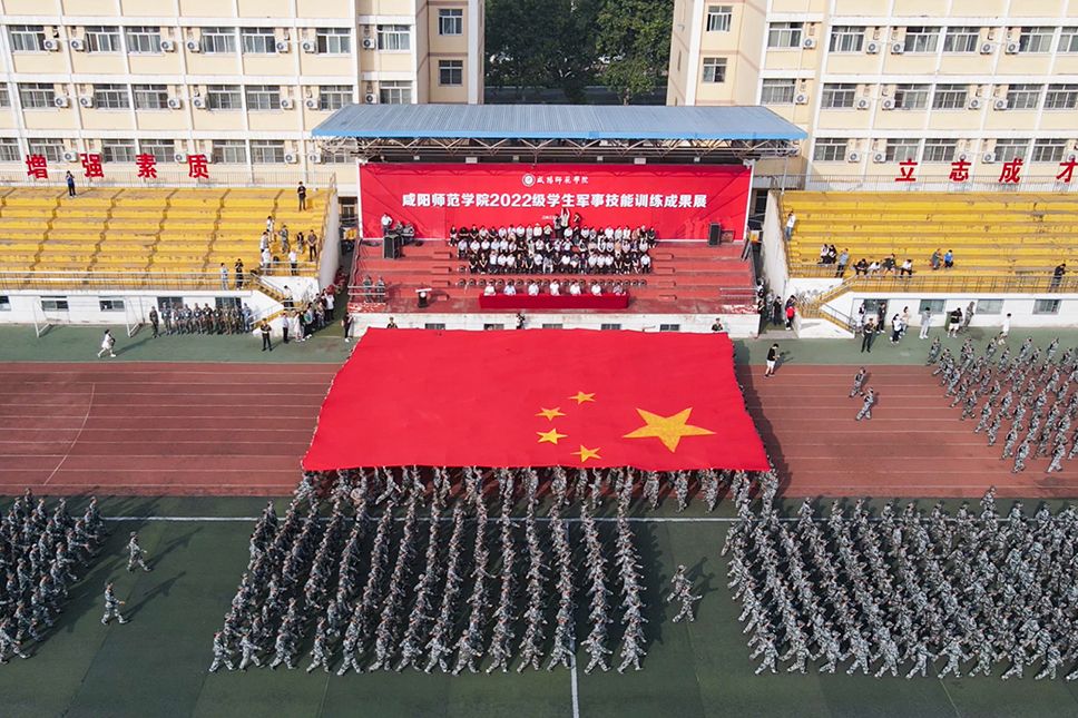 9月8日上午,世俱杯在渭城校区体育场举行2022级学生军事技能训练成果展。校党委书记赵万东,校党委副书记、校长舒世昌,校党委副书记袁也,副校长毛龙灿、王长顺、张弘,军训团团长王天喜出席。党委副书记周群英主持军事技能训练成果展。