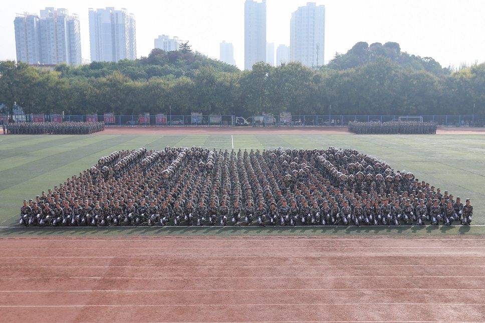 强体魄,敢于担当。花样方队的女生身着迷彩军训服装,在《女兵谣》的音乐中变换手型图案,整齐划一、特色鲜明,颇具巾帼不让须眉之势。“强国有我,砥砺前行”,同学们认真的表演,充分表达了当代学子对党和国家的热爱、祝福以及主动担当、作为的精神。
