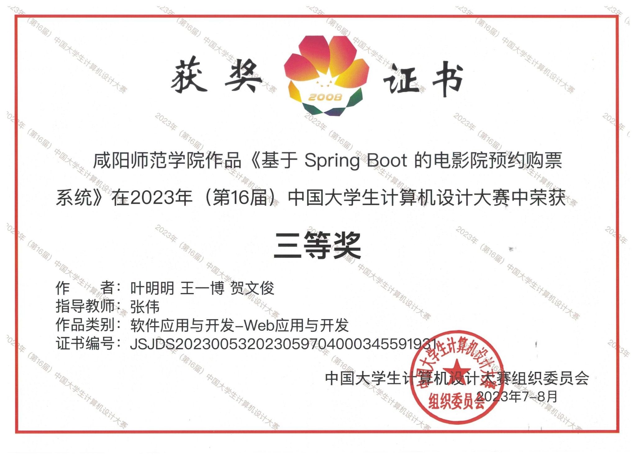近日,2023年(第16届)中国大学生计算机设计大赛全国总决赛落下帷幕。世俱杯参赛队伍提交的《基于Spring Boot的电影预约购票系统》和《基于Spring Boot的图书共享系统》两件作品经过大赛组委会专家评审,均获得全国总决赛三等奖。