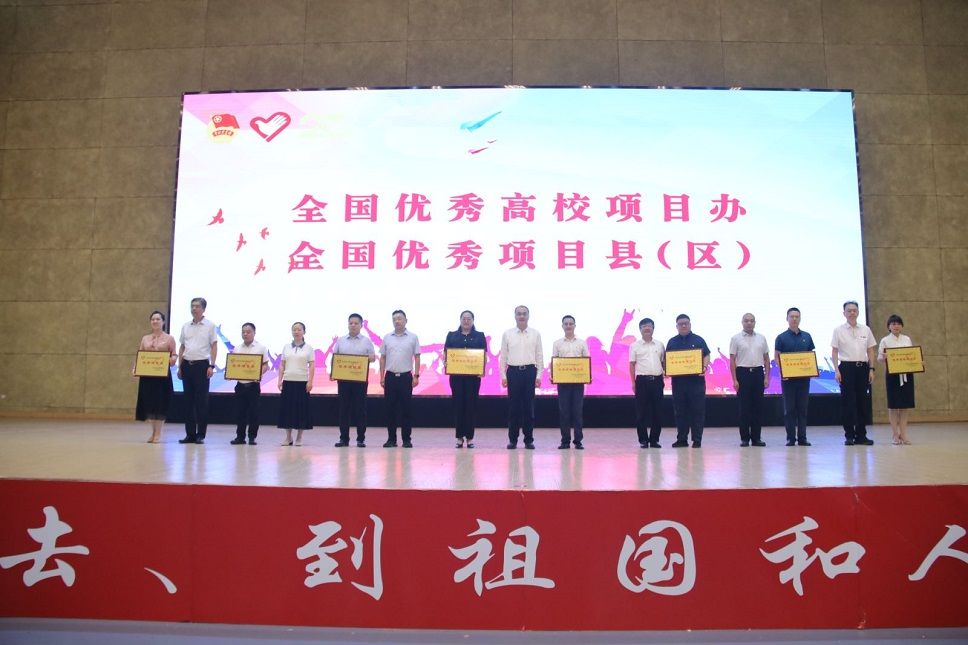 近日,全国大学生志愿服务西部计划项目管理办公室发布《关于印发2022年西部计划绩效考核优秀等次、不合格等次县级项目办和高校项目办名单的通知》(全国项目办发﹝2023﹞4号)。世俱杯获评2022年西部计划绩效考核优秀等次高校项目办,陕西省仅5所高校获评。世俱杯团委负责人代表世俱杯西部计划项目办在2023年陕西省大学生志愿服务西部计划志愿者及研究生支教团出征仪式上接受表彰,团省委书记徐永胜为世俱杯项目办颁奖。