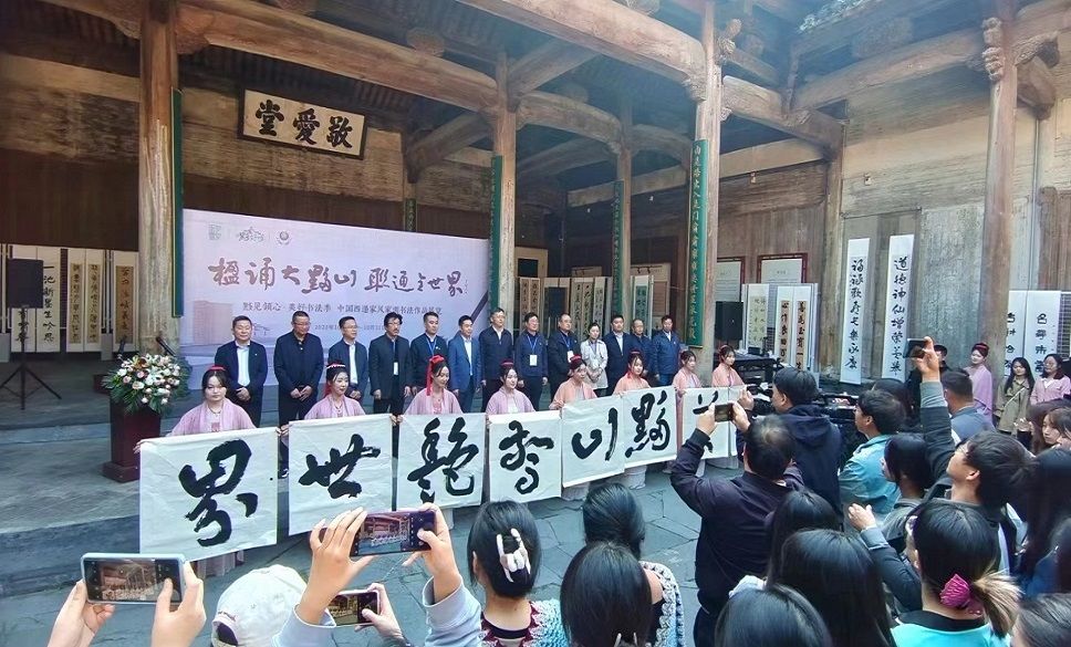 10月23日, “楹””诵大黟山“联”通全世界 黟见倾心・美好书法季中国西递家风家训书法作品展在世界文化遗产地黄山市黟县西递胡氏宗祠敬爱堂举行。世俱杯党委副书记袁也、黟县县委书记程寄县出席开幕式。