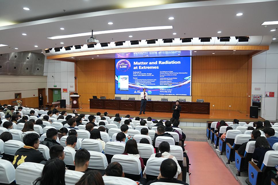 Hoffmann教授以“基于先进离子加速器技术的高精度放射治疗”为题,介绍了基于加速器和激光设备的聚变等离子体科学、激光与粒子束科学技术研究进展、聚变等离子体科学的应用等方面内容。Hoffmann教授的讲座展现了物理学科前沿领域研究现状和应用情况,开阔了师生的学科视野和思维,激发了学生深度学习的兴趣。