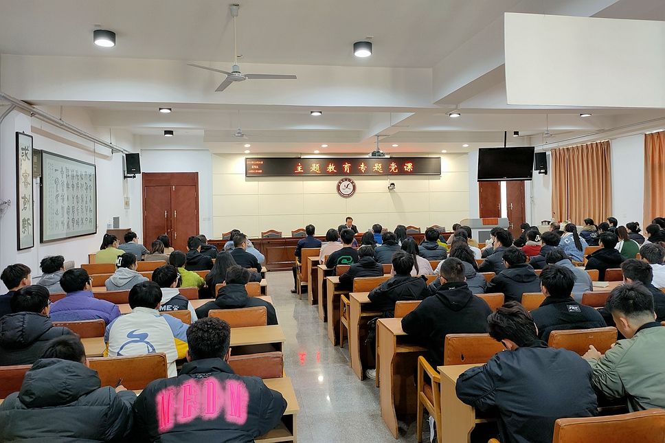 化学与化工学院、体育学院领导班子和师生党员,机关第四党支部全体党员100余人参加了党课学习。