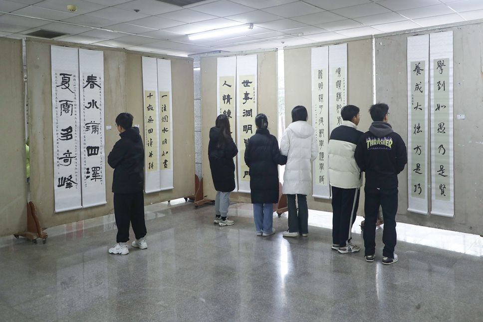 开幕式后,嘉宾与在场师生认真欣赏每一幅书法佳作,感悟精神,交流心得。大家纷纷表示,把家风家训这一传统美德与中国书法楹联相融合,既能彰显家风家训教化之功用,更能弘扬中华优秀传统文化书法之魅力。
