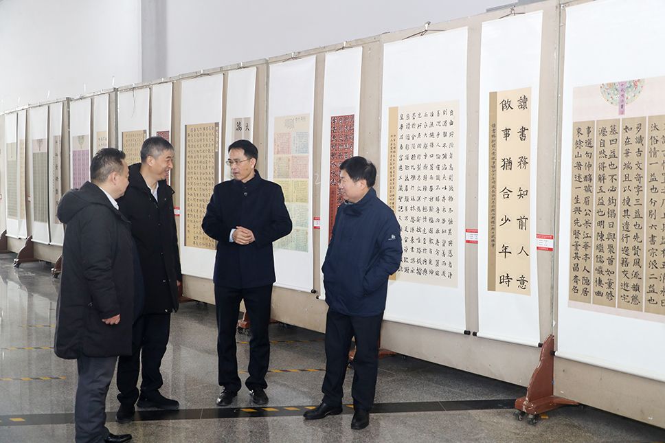 开幕式后,在学院领导的陪同下,校领导、嘉宾共同参观了展厅作品。