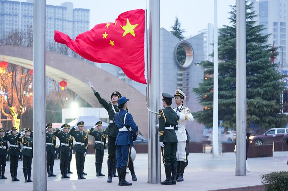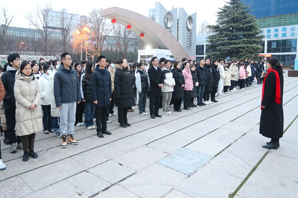 升国旗仪式在雄壮的国歌声中拉开序幕,五星红旗冉冉升起,全体师生肃立注目,齐唱国歌,表达对祖国的无限热爱和崇高敬意。