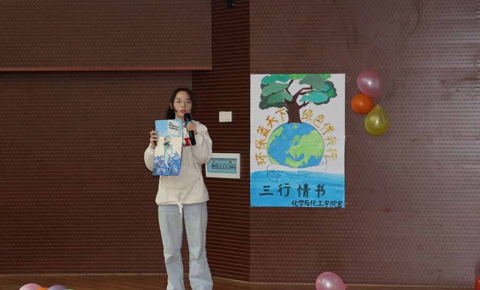 为广泛宣传绿色低碳、节能环保、文明健康的生活理念和生活方式,推动环保可持续发展,增强师生环保意识,5月10日,由校团委主办,化学与化工学院团委承办组织开展了“环保蓝天下,绿色伴我行”三行情书大赛决赛。