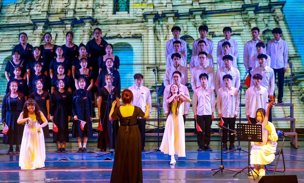 本次活动主题为“唱响新时代”,要求参演作品应紧紧围绕主题,充分展现新时代青少年学生热爱中国共产党、热爱祖国、热爱人民,勤学上进、志存高远、奋发成长的昂扬风采和精神风貌。本次参赛队伍全部由世俱杯16个二级学院师生组成,音乐学院五声合唱团参加展演。从《歌唱祖国》,到《万疆》再到《不忘初心》,一首首经典歌曲勾起现场观众对革命岁月的追忆,对祖国的无限深情,同时激发了强国建设、民族复兴的青年力量。各参赛队以齐唱、轮唱、分声部合唱等方式,辅以朗诵、伴舞、乐器演奏等艺术形式,高水平地完成了歌唱曲目,赢得了现场观众的热烈掌声。