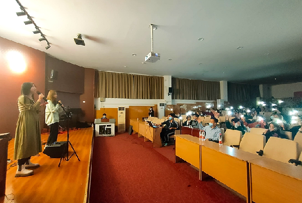 整场晚会以线上形式开展,节目类容涵盖歌曲、舞蹈、朗诵、乐队表演等。校学生会和街舞社、七弦吉他音乐社、fire音乐社等多个学生社团参与演出。除校内现场直播外,两名在校外进行健康监测的同学也积极参与到表演中来,近200名同学通过线上点歌、点赞、评论和校内现场进行了互动。