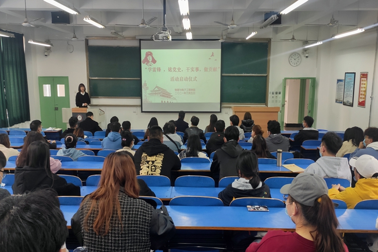 为深入贯彻习近平总书记在党史学习教育动员大会上的重要讲话精神,弘扬和践行新时代雷锋精神,教育引导广大师生厚植爱国主义情怀,扎实推进学生思想政治教育工作,3月5日上午,物理与电子工程学院举行“学雷锋,铭党史,干实事,做贡献”活动启动仪式。学院党委副书记袁月主持仪式。