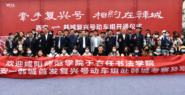 考察开始之际,于右任书法学院院长王智杰受邀在西安—韩城复兴号动车组开通仪式上作了发言;随后还分别与韩城市政府、韩城市景区管委会、韩城市状元府博物馆、陕西研学旅行教育咨询服务有限公司等领导就校企合作等问题进行了深入探讨与交流,并取得了积极成果。