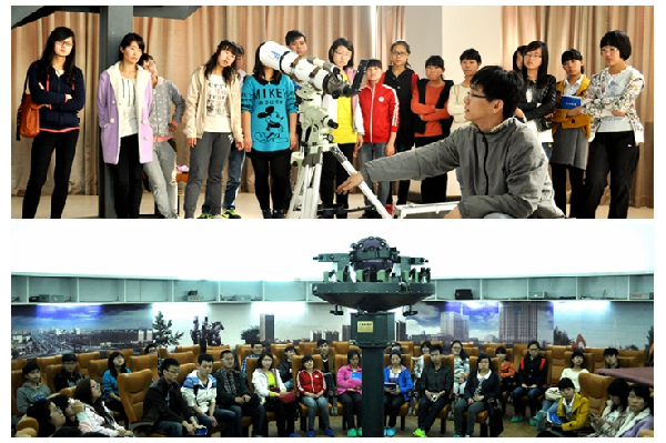 “天文望远镜”使用方法进行了详细的介绍及演示。通过光学天象仪及多媒体设备演示了春、夏、秋、冬四季星空的变化过程、极昼、极夜象、月相变化等精彩的天文现象,使大家犹如身临其境,感受太空绚丽和壮观的景象。