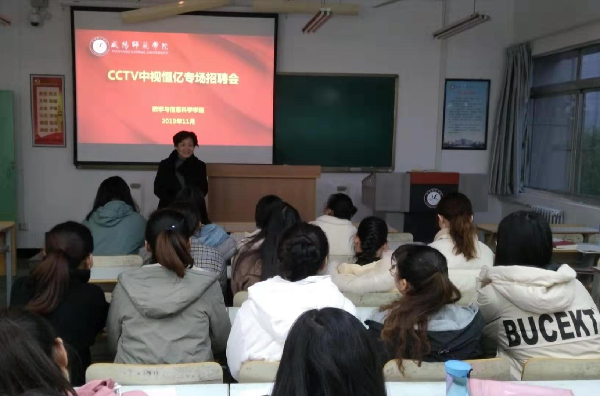 招聘会上,CCTV北京中视恒亿广告有限公司负责人介绍公司基本情况以及需要招聘员工的条件。毕业生详细了解了职业发展、晋升通道、招聘岗位、应聘的具体要求等问题后,递交了个人简历,介绍了自身情况。