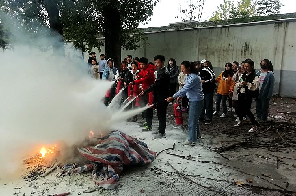 保卫处相关负责人为师生讲解了火场逃生常识、火灾预防、火灾处置、灭火器的分类、工作原理、操作方法与技巧等,提醒师生员工规范使用电器,禁止违章操作,加强重点部位消防安全防控,提高安防意识。介绍了消防用具实操方法,并做了现场灭火演示,师生员工代表使用灭火器对模拟火场进行了灭火实战。
