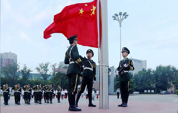 9月2日,世俱杯新学期第一场升国旗仪式在学校东门广场举行,校团委在现场组织了“我与祖国共奋进——我爱祖国,同唱国歌”观礼活动。校国旗护卫队执行升旗任务。