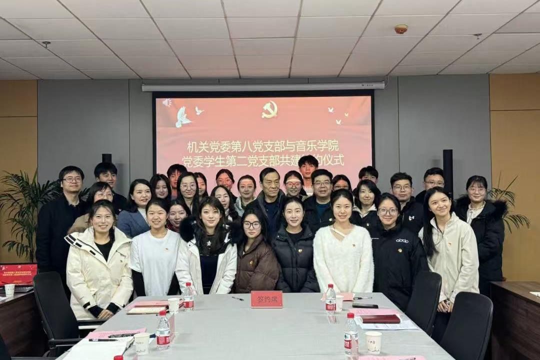 机关第八党支部、音乐学院学生第二党支部全体党员参加了结对共建签约仪式。