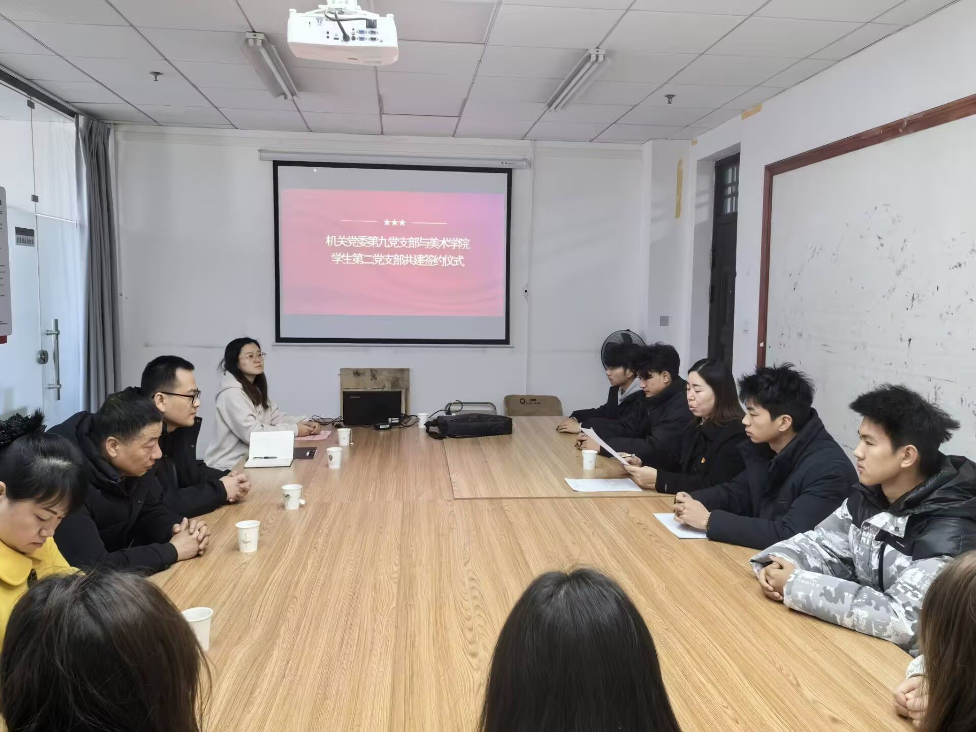 机关党委第九党支部、美术学院党委学生第二党支部党员代表参加了结对共建仪式。