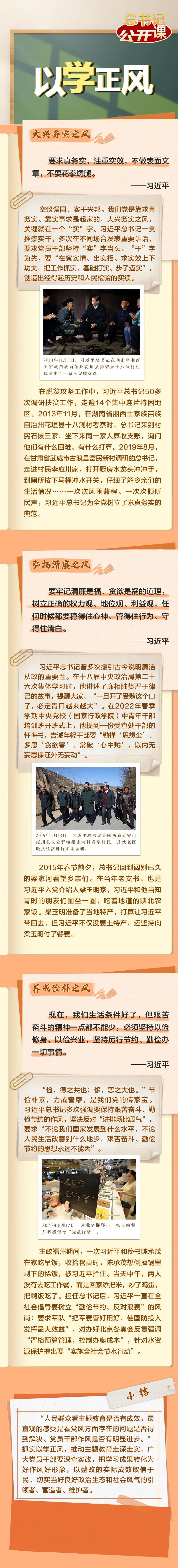 “通过集中教育推动全党以自我革命精神解决党风方面的突出问题,是一条重要历史经验。”今年6月,习近平总书记在内蒙古考察时围绕“以学正风”提出明确要求,强调“大兴务实之风”“弘扬清廉之风”“养成俭朴之风”。