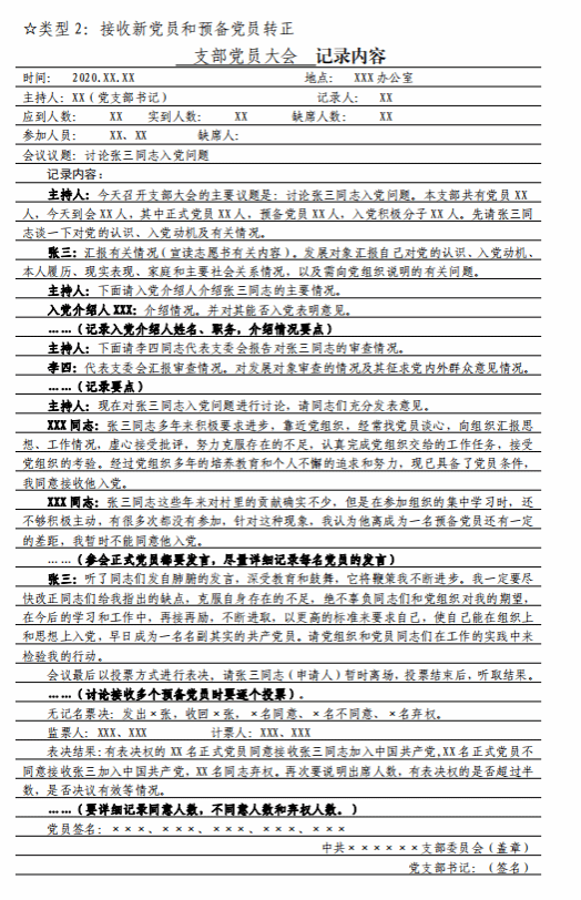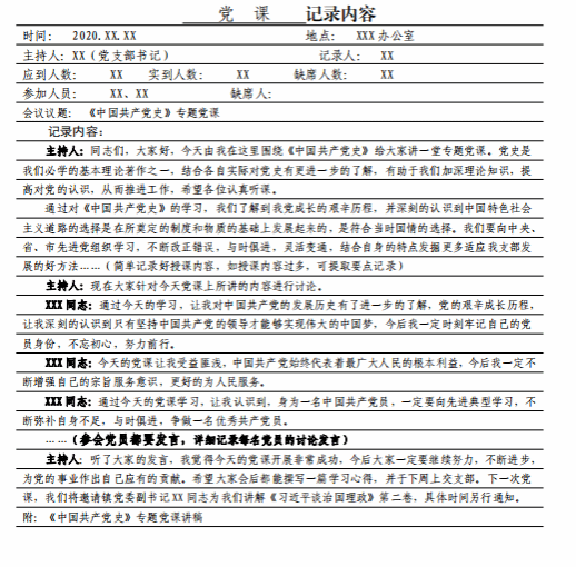 如何规范书写“三会一课”记录?(附记录要求和样式)
