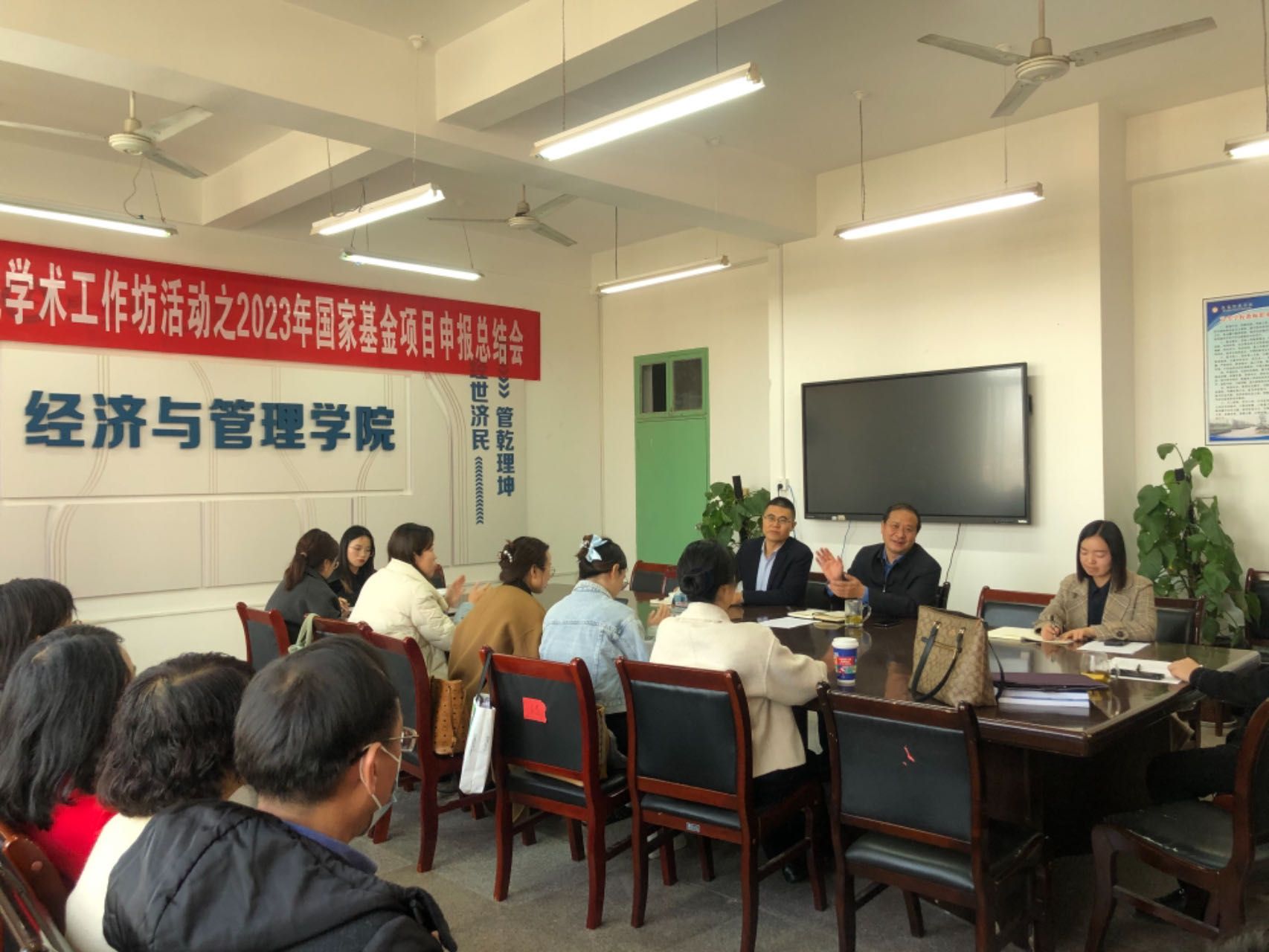 院长助理李淼总结了我院2023年国社科基金项目申报工作,分析了近几年管理、经济专业的研究热点和项目立项情况,并部署了我院2024年国家基金项目申报工作任务和时间安排。