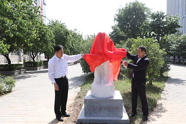 捐赠仪式上,马副书记与王兴华共同“思想者”汉白玉雕塑揭幕。国资处处长徐文强为两位校友颁发了捐赠证书。