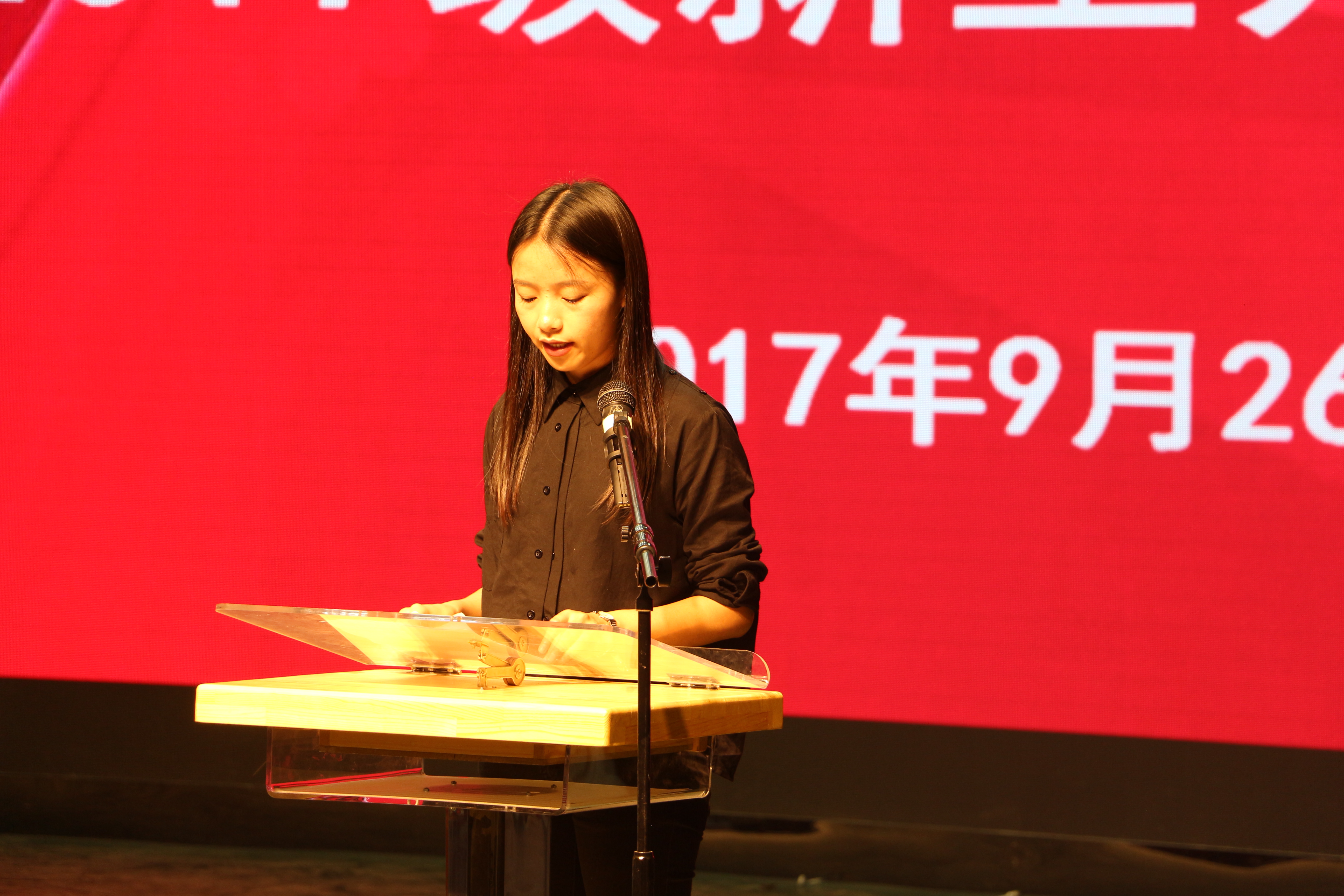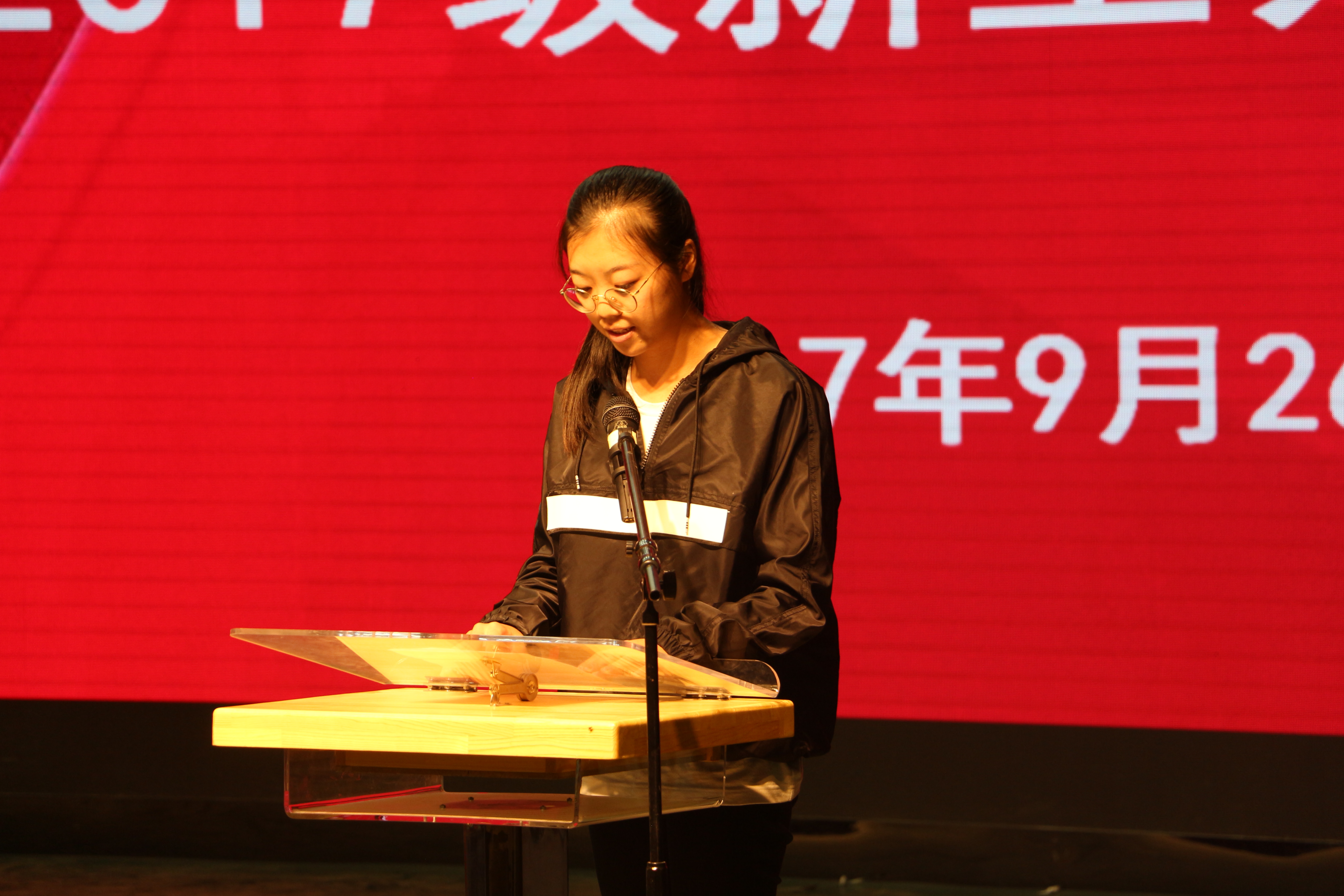 国家奖学金获得者、旅游管理2014级学生章晓洁代表高年级学生与新生分享自己学习心得和学习经验,并鼓励新生同学多学习、多参加社团活动锻炼自己的能力,不断提升自己。新生代表冯天天同学代表2017级新生从新目标树立,勤奋学习,严于律己等方面做表态发言。