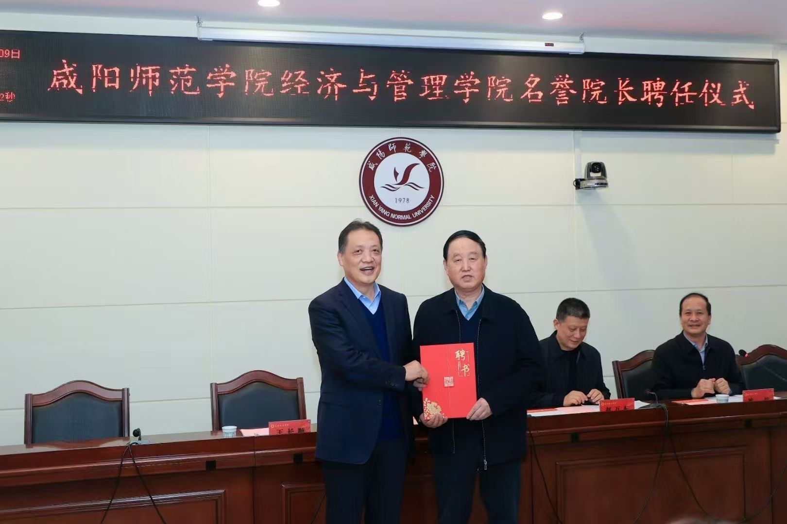 12月9日,我院举行名誉院长聘任仪式。校党委书记赵万东,校党委副书记、校长王长顺,西安交通大学冯根福教授及学校相关职能部门领导出席,我院全体教职工和学生代表参加本次活动。校党委委员、副校长姚波主持聘任仪式。