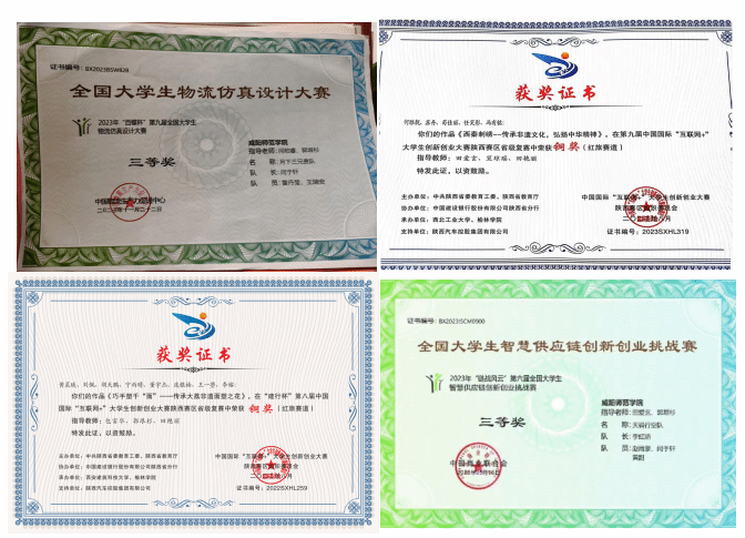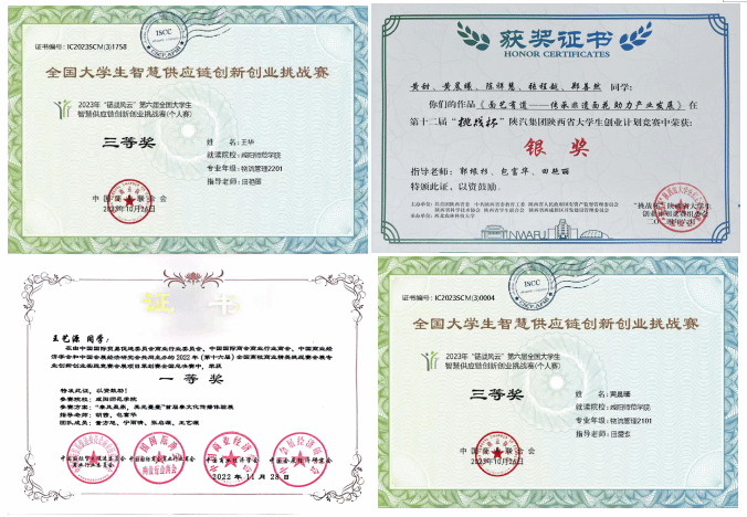八、实践教学:近年来,物流管理专业的学生参与全国大学生物流设计大赛、供应链创新大赛、挑战杯、互联网+、商业精英挑战赛、国际大学生创新大赛、电子商务三创赛、市场调查与分析大赛、智慧供应链创新创业挑战赛等重要赛事,学生们凭借出色的方案设计和专业演讲能力,获校级以上学科竞赛50项,其中省级以上30余项。承担校级以上大学生创新创业训练计划项目10项,其中省级4项,公开发表学术论文4篇,获得相关行业及资格证书76个。