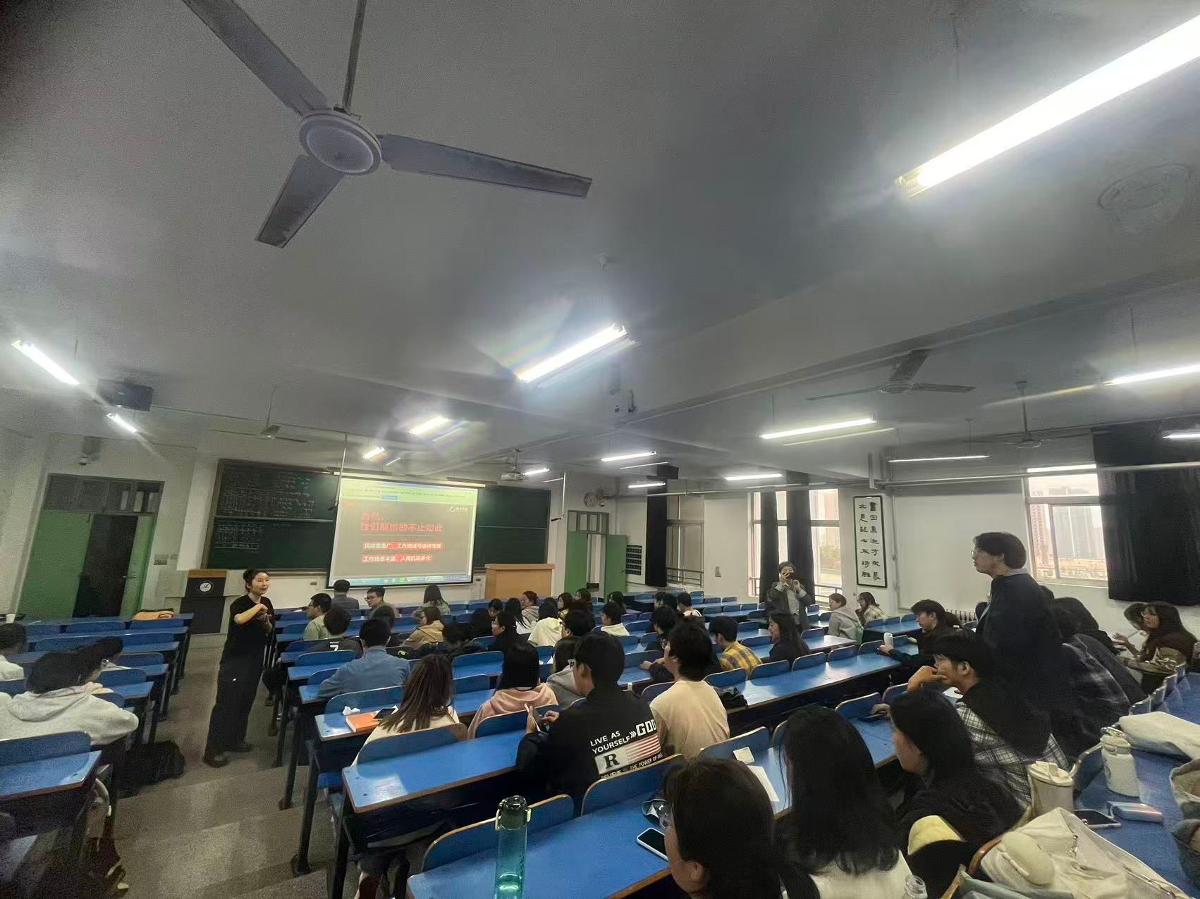 顺丰同城招聘负责人王经理,通过企业宣传片和精彩的PPT演示,全方位、多角度地向在场同学介绍了顺丰同城的企业文化、业务生态、行业领先优势以及未来的战略布局,重点讲解了本次校园招聘的职位需求、发展路径、薪酬福利体系以及极具吸引力的“校园大使管培生”项目,详实的介绍让同学们清晰了解了职业发展的可能性与上升空间,感受到了顺丰同城对青年人才的重视与渴望。