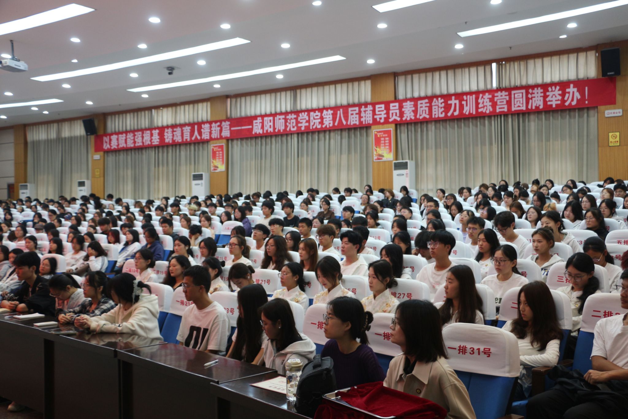 学院领导、两办主任、教学秘书、全体辅导员以及2025级全体新生493人参加了大会。