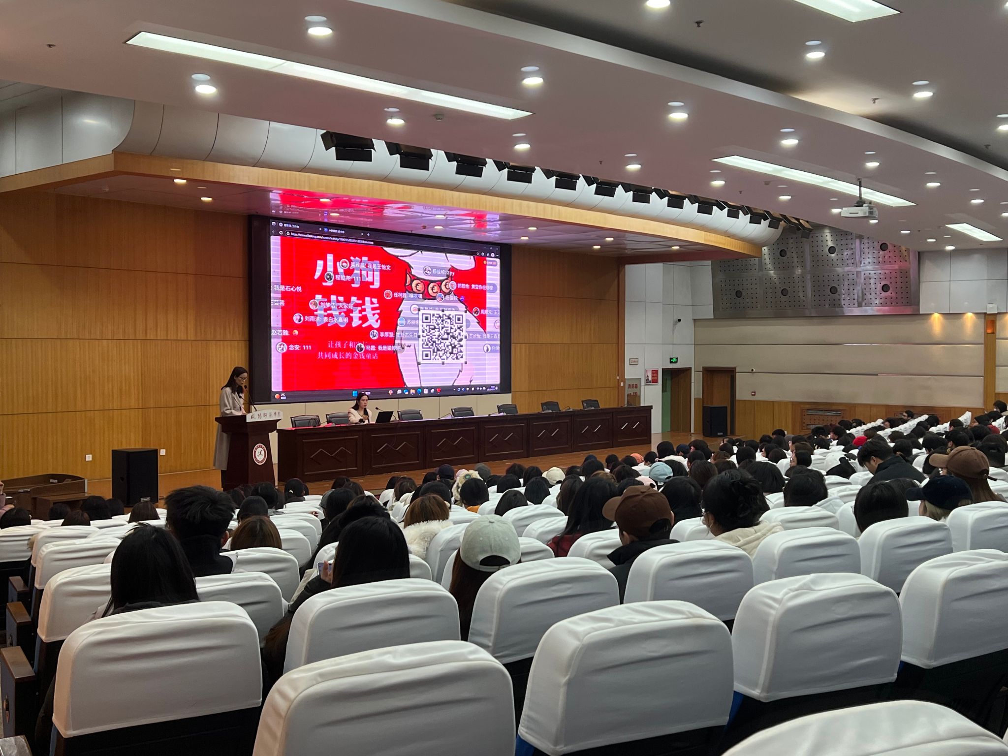 讲座中,张老师以畅销理财启蒙读物《小狗钱钱》为切入点,通过生动案例剖析与互动问答相结合的方式,分享了关于财富认知、目标设定、自律坚持和风险规避等诸多感悟,剖析了财经素养在青年成长中的重要意义,引导同学们跳出单纯的专业知识学习,建立财经思维与人生发展相融合的宏观视野。