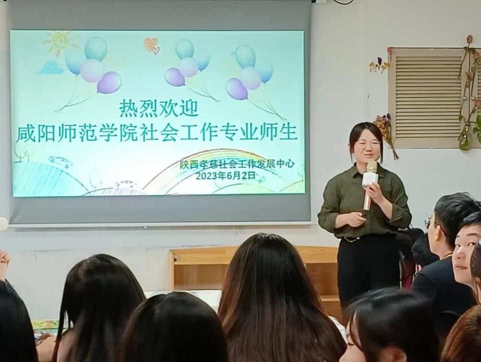 陕西孝慈社会工作发展中心西安负责人在为同学们介绍该机构的发展情况