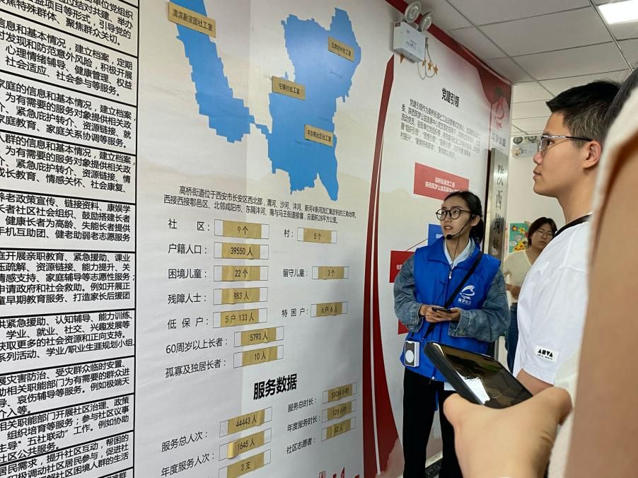 高桥街道社会工作服务站社工在为同学们介绍高桥街道的基本情况
