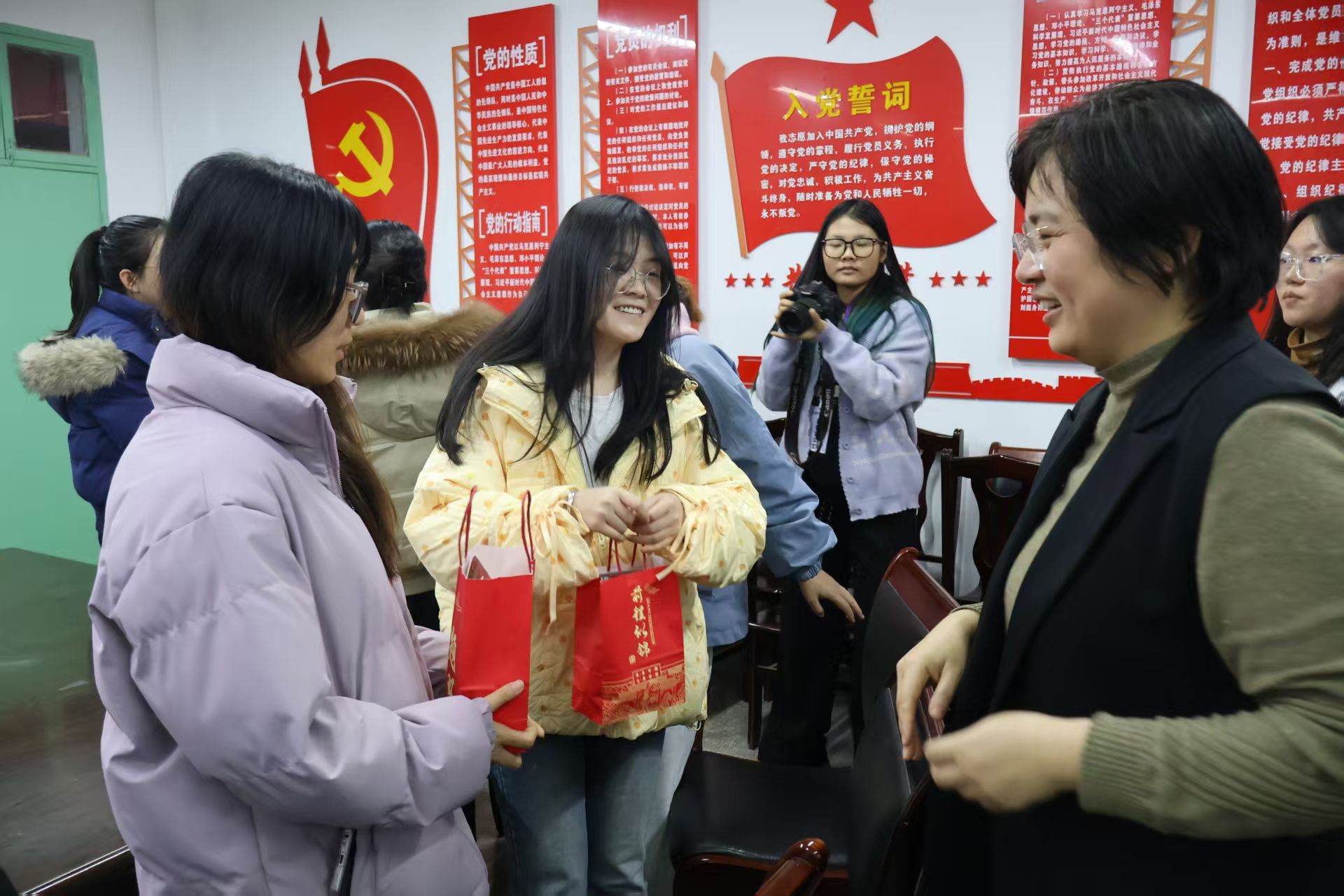 各系主任结合学科专业特点,为同学们提供了具有针对性的复习指导与备考建议。学院为每位考研学生精心准备了寓意美好的“考研加油包”,内含象征“心想事成”的橙子、寓意“精力充沛”的旺仔牛奶、寄望“下笔有神”的文具套装,以及满载师生祝福的励志贺卡。