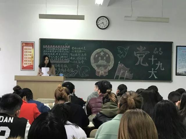 最后,学生第一党支部书记、辅导员陈萌强调,全体学生党员应深刻领悟十九大精神,并积极将十九大精神落实到工作、生活、学习等实践中。