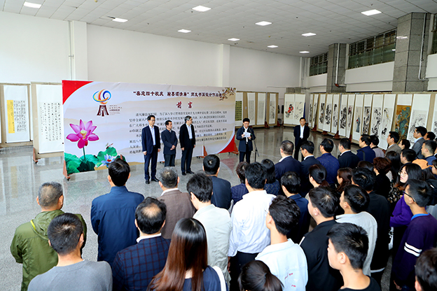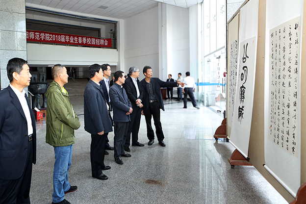 5月11日,世俱杯“喜迎四十年校庆翰墨颂清廉”师生书画设计作品展开幕式隆重举行。校党委书记刘彬、校长方明、纪委书记王启和、副校长毛龙灿出席仪式。