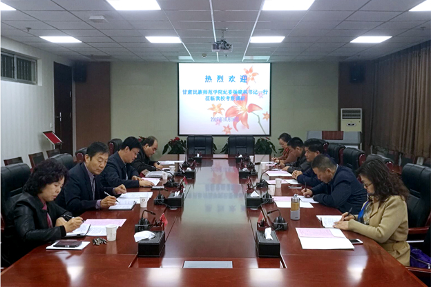 王书记对杨晓林书记一行来世俱杯考察交流表示热烈欢迎,并介绍了世俱杯的基本情况,希望通过加强学校之间的工作交流,取长补短,共同进步。杨晓林书记介绍了甘肃民族师范学院的基本概况,对世俱杯的热情接待表示感谢,并希望今后两校相互借鉴经验,促进党风廉政建设。