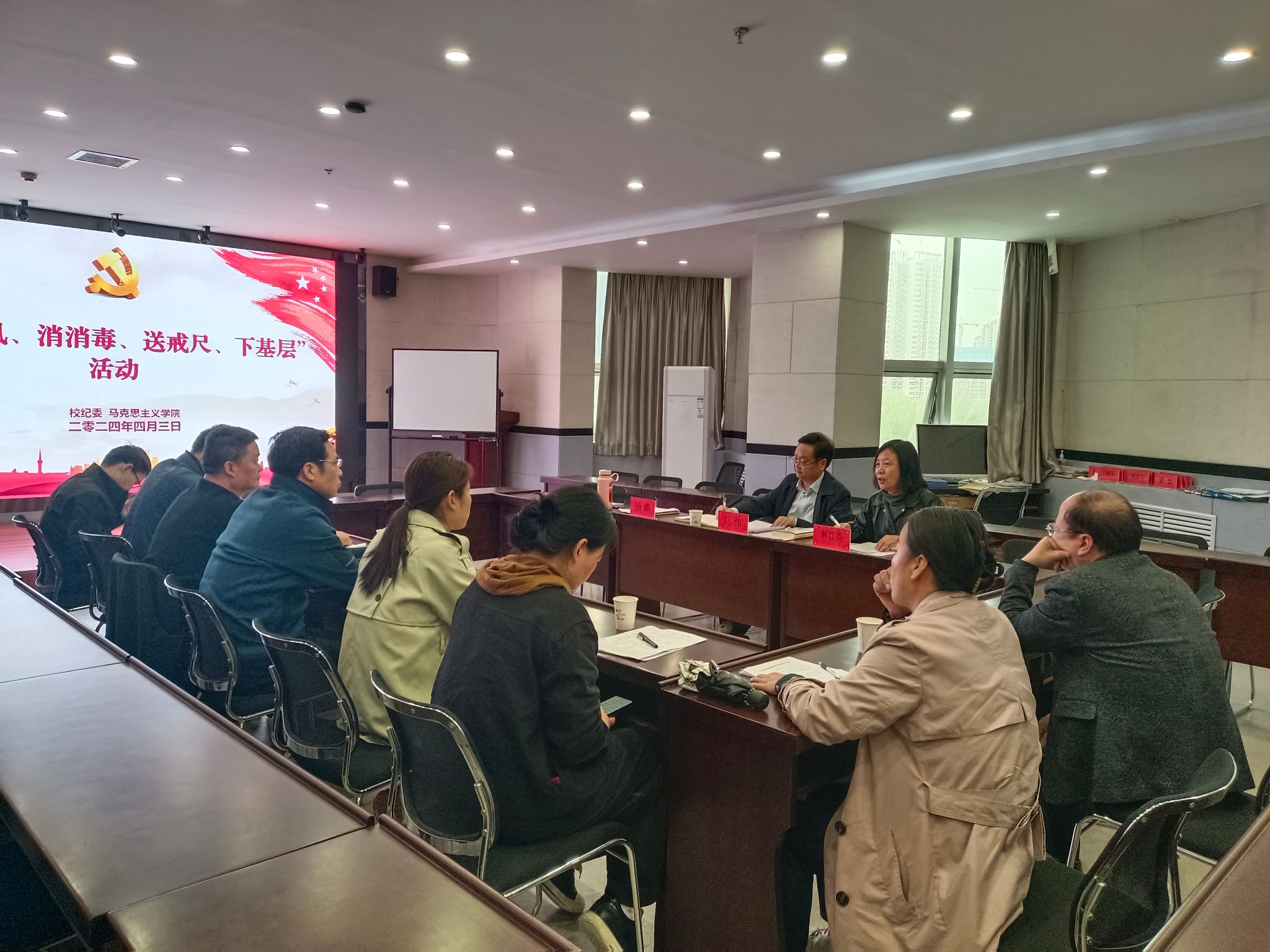 马克思主义学院党委理论中心组成员参加了学习活动。本次活动也是校纪委“吹吹风、消消毒、送戒尺、下基层”工作的一部分。