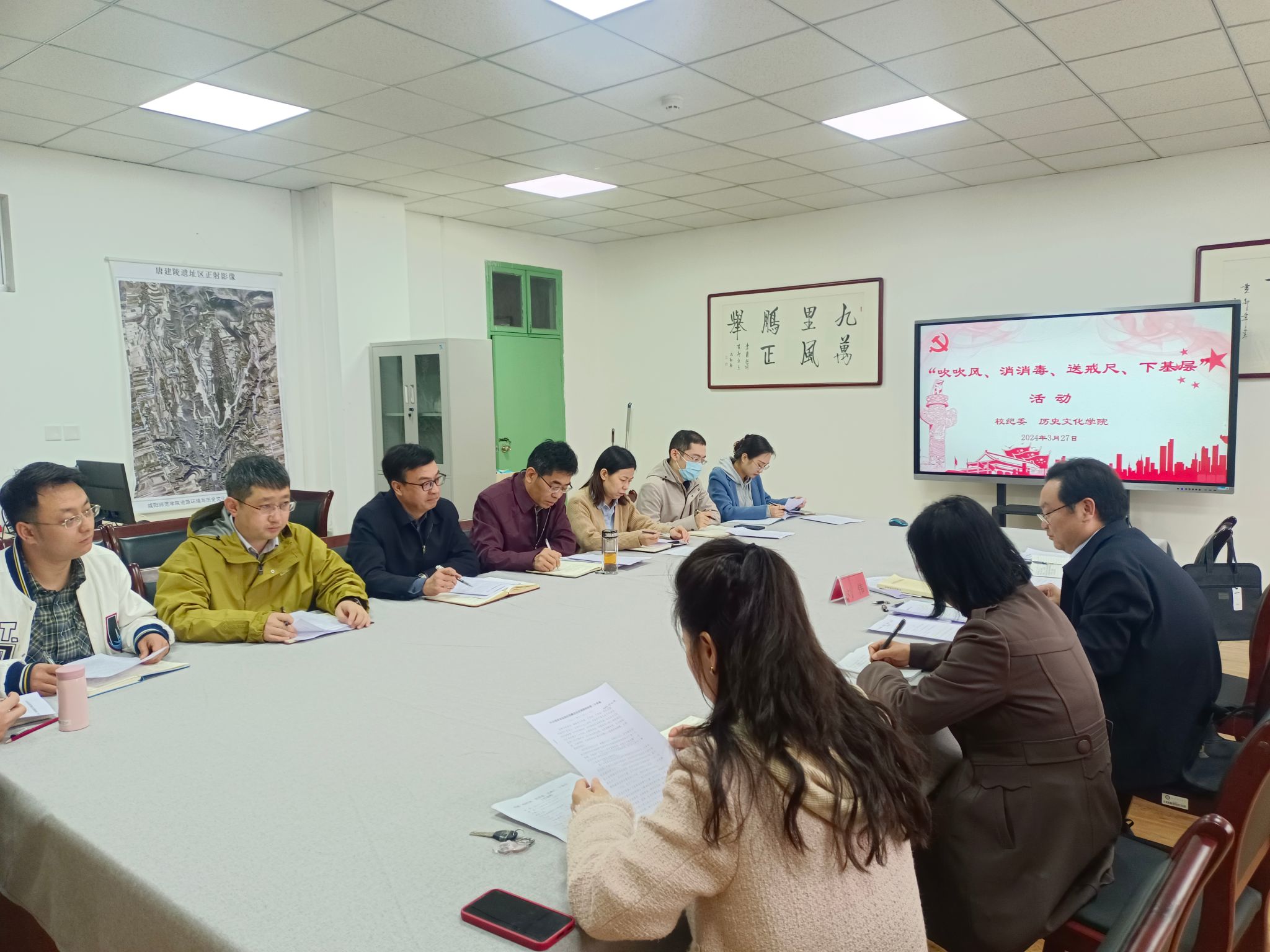 3月27日,校纪委与历史文化学院党委开展了“吹吹风、消消毒、送戒尺、下基层”党风廉政教育学习活动。学院党委书记申战军主持活动。