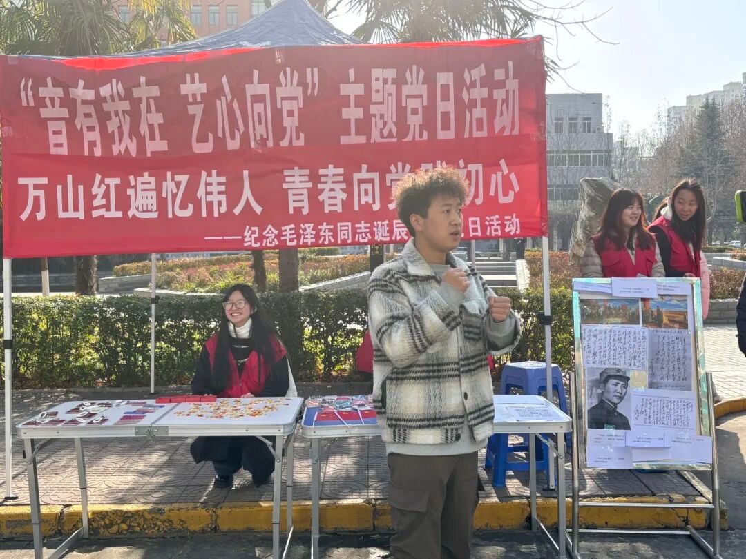为深切缅怀毛泽东同志的丰功伟绩,传承红色基因,厚植青年学子爱党爱国情怀,12月26日中午,机关党委第四党支部与音乐学院党委学生第一党支部于sjb世俱杯官方网站秦池边举办“万山红遍忆伟人 ·青春向党践初心”主题党日活动。