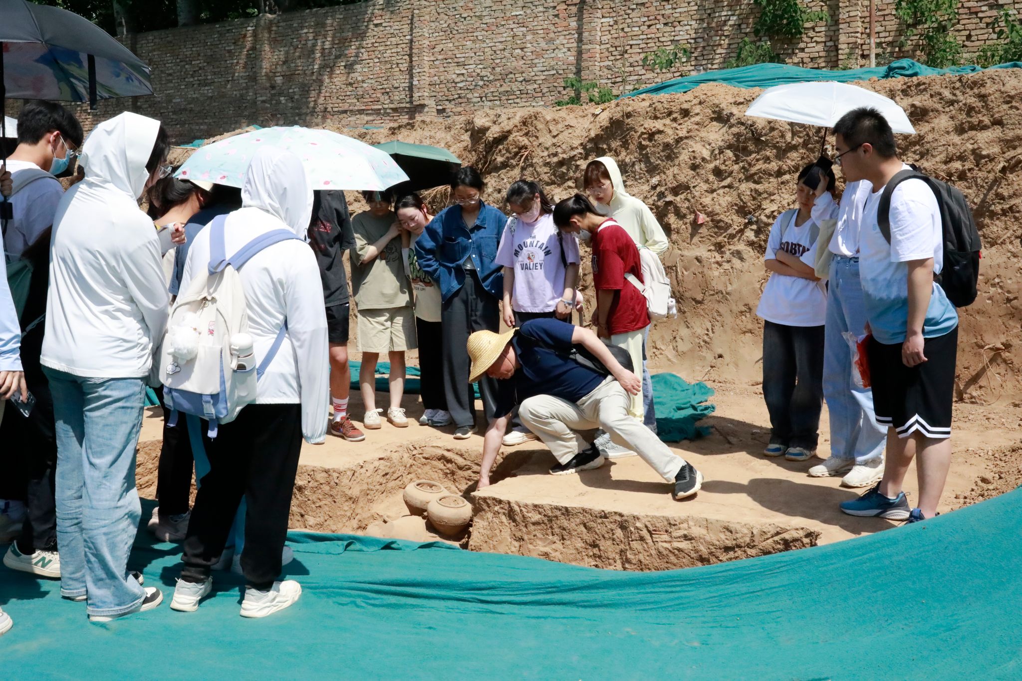 肖教授是我院文博专业负责人,具有国家文物局田野考古个人领队资格,从事考古发掘与研究22年,近期在学校附近的双泉村开展考古发掘。为让文博专业学生近距离接受考古学教育、“沉浸式”学习考古知识、直观感受文化遗产魅力,肖老师将课堂搬到了考古工地。