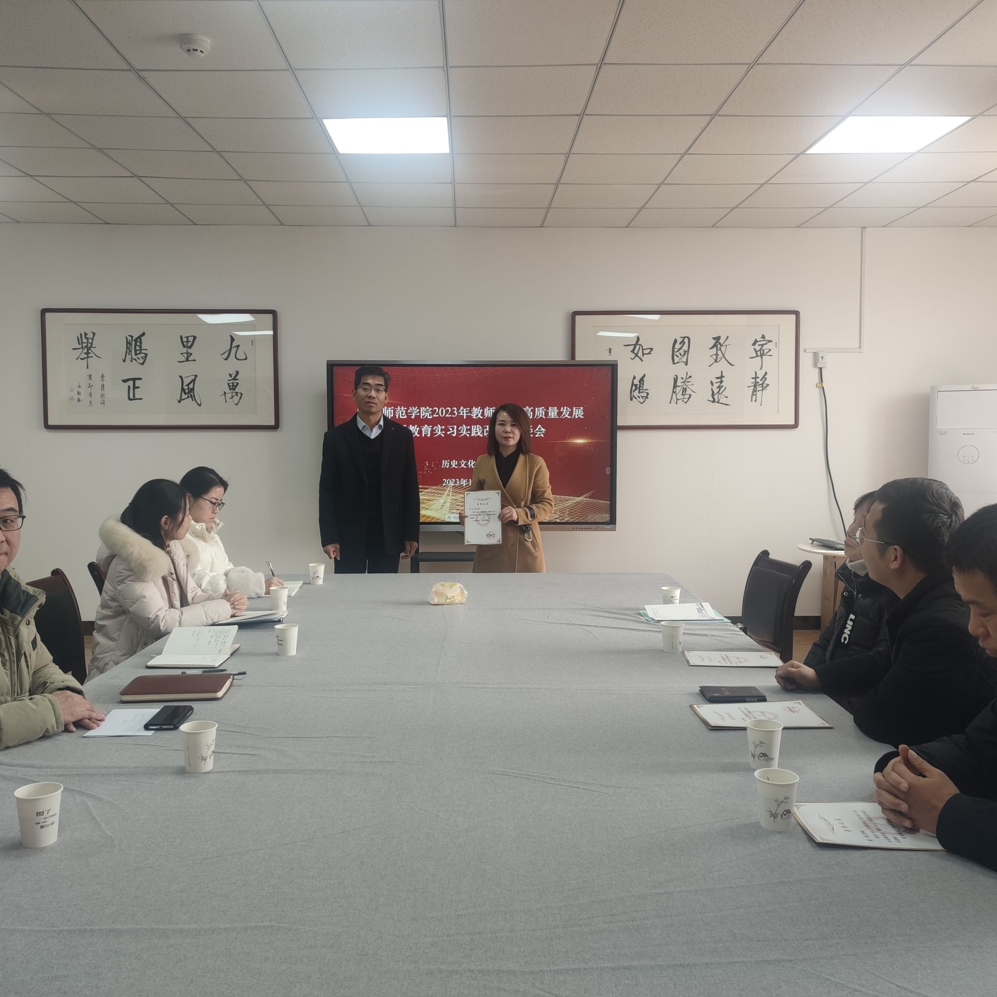 2023年12月20日下午,历史文化学院召开了2023年教师教育高质量发展暨教育实习实践改革座谈会。参加本次座谈会的有历史文化学院党政领导、优秀实习教师代表和乾县教育局优秀实习基地负责人及校外优秀指导教师代表。