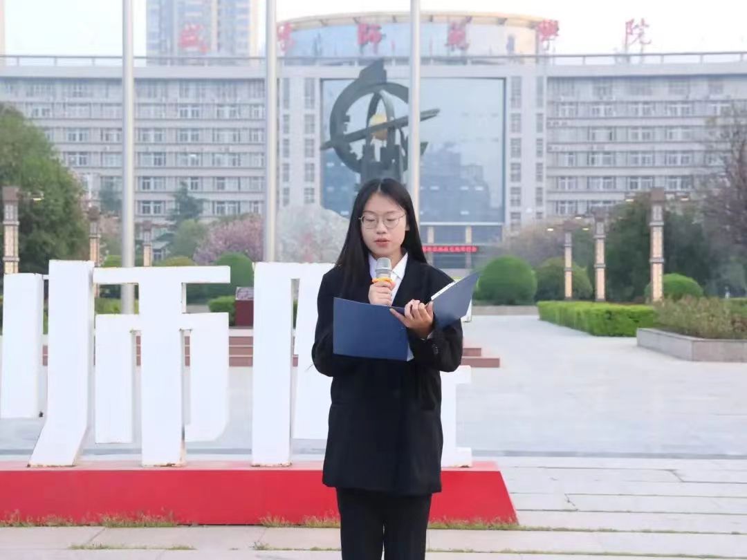 随后,学生代表历史2201班刘康蕾作了主题为《山河无恙:吾辈亦当自强》的演讲,号召同学们拥抱伟大的新时代,紧跟党的步伐,发出蓬勃的青年力量,将爱国内化于心,外化于行。
