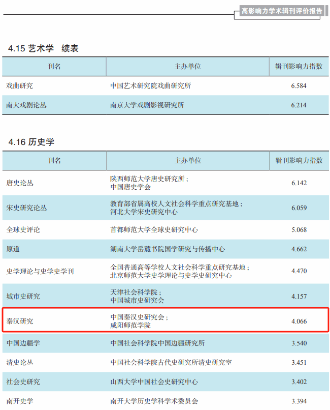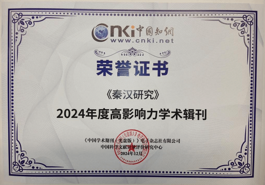 《秦汉研究》入选中国知网 “2024年度高影响力学术辑刊”榜单