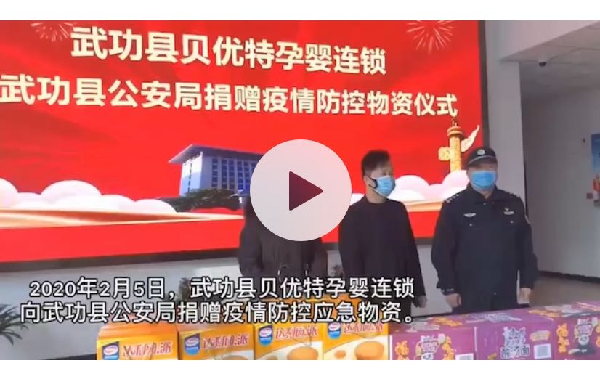 2.王旭升校友,sjb世俱杯官方网站2006级物理系,现为贝优特(朵小西)母婴连锁总经理。疫情无情,人间有爱!王旭升校友的贝优特(朵小西)母婴连锁公司为武功县公安局捐赠防疫物资助力抗击新冠疫情 !