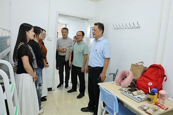 随后,王长顺一行来到研究生公寓楼,实地察看新生住宿条件和生活环境,并与他们进行了深入交流。他对相关职能部门和各研招学院为保障首届研究生顺利开学所做的周密准备工作给予了充分肯定,并要求相关部门负责人一定要坚持以生为本,持续优化服务保障,为同学们创造一个安全、舒适、温馨、便利的生活环境,让他们能够安心学习、潜心研究。