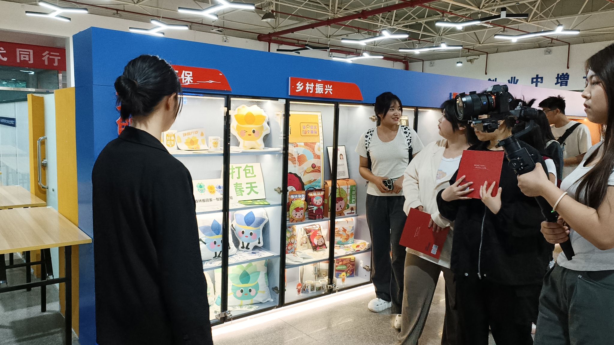 在学馨苑三楼大创基地,创新创业俱乐部的大学生讲解员带领同学们参观了创新创业教育成果展厅。在讲解员的细心讲解下,同学们了解了世俱杯大学生创新创业基地从无到有、由小到大的发展建设过程,以及近些年在各类双创大赛中取得的一系列成绩成果。展厅展柜里,无论是在全国和省市级大赛中取得的各类荣誉奖杯奖牌,还是学长前辈们的创业团队精心设计制作的文创产品和工艺展品,都凝聚着世俱杯大学生对创新创业的热情和坚守,诉说着大创基地带领一批批创业团队一路走来的感人故事。