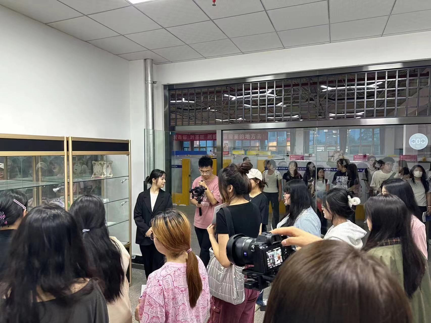 设计学院学生第一党支部书记田梦瑶和党员代表、入党积极分子,第八党支部党员高于涵、杨华,学校创新创业爱好者、繁星校友志愿服务社成员等师生 50余人参加了活动。